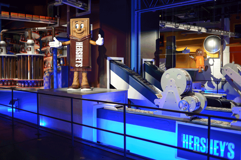 Hershey’s Chocolate World – Hershey’s Chocolate Tour recently received a complete update in 2016 to include all new animated characters, as well as additional theming and audio/video elements.