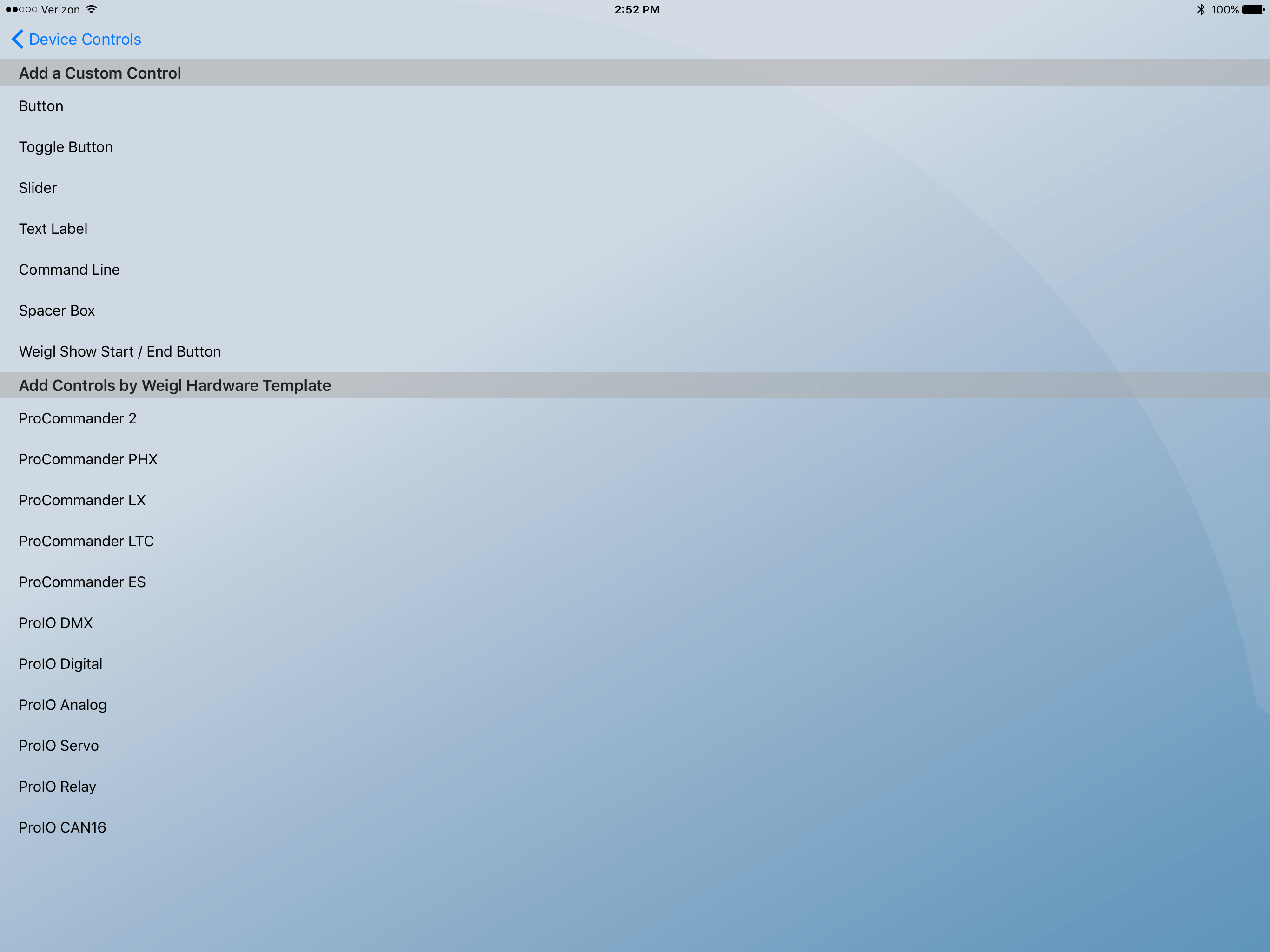Once a project is complete, share any control panels with users through Airdrop, email, Dropbox, iCloud and more. Multiple panels can be configured on a single device, giving the user museum or park-wide access to your Weigl Hardware devices from a single interface. Projects auto-scale across all iOS devices, providing easy deployment to maintenance or operations staff from a single interface layout.